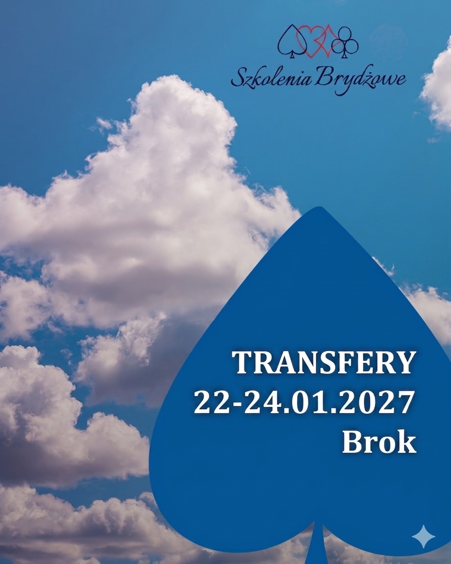 Jesienno-zimową porą serdecznie zapraszam zainteresowanych podniesieniem umiejętności z zakresu licytacji (WJ), techniki gry w obronie oraz doskonalenia rozgrywki na zajęcia online, które rozpoczniemy w ostatnim tygodniu listopada 2025. Spotkania potrwają z przerwami do końca wiosny. Proszę formować grupy w oparciu o trzy podstawowe warunki: podobny poziom uczestników, przyjacielskie nastawienie do pozostałych